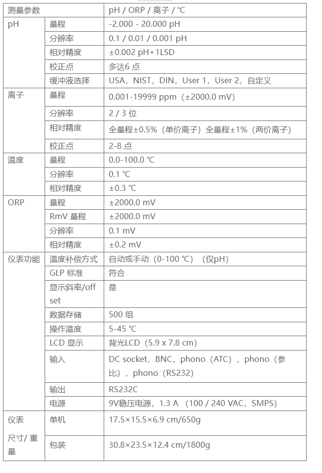 pH / 离子 / 氧化还原电位(ORP) / 温度